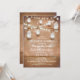 bright rustic wood and string lights with mason jars rehearsal dinner invitations