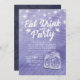 EAT Drink & Party / EAT Drink and Be Married Wedding Celebration / Bridal Shower Invitation Cards Templates - Elegant Lettering Script and Vintage Couple Mason Jars and String Lights on Purple Violet Color Background.