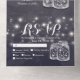 Modern Wedding invitation with Detachable RSVP Postcard Template - Elegant Lettering Script and Vintage Couple Mason Jars and String Lights on Navy Blue Floral Linen Background.