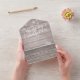 Simply add your names , wedding information, your reply by date, your choice of meals and your name(s) and return address on this easy-to-use template. Easy to Tear off Perforated RSVP Postcard. Just Simply Fold Each Card Into the Outlined Shape, and then Seal and Send, no envelope needed for shipping!