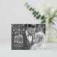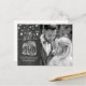 Modern Wedding Announcement Postponement Photo Postcard Templates - Elegant Lettering Script and Vintage Couple Mason Jars and String Lights on Black Chalkboard Background.