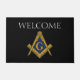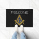 Black, Freemason, masonic, square and compass outdoor doormat.