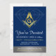 Category: freemasonry invitation template, custom cards for freemasons. Colours: navy blue and metallic gold.