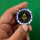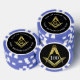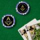 Would you like to create your own custom masonic poker chips that coordinate well with personalised freemason playing cards? Here's a quality gold square and compass poker chip template easily editable by you to make your own poker chips! Include your lodge name or other custom text - even the dollar amount on the back! While the example shown indicates a blue and white masonic poker chip with a black background, the colour combinations are numerous if you further customise the design. Other great ideas for the freemason poker chip template include putting your own personalised message on the backside for things such as short messages, "free drink" or something else that may be memorable for your guests. Colours: blue and white; black and gold.