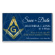 Navy and gold classy masonic save the date magnets that can be personalised by your! Slip in these small save the date magnets into the envelope with your personalised masonic invitations, giving your guests an easy way to be reminded of your approaching Annual Installation of Officers or lodge event. This modern masonic template features a gold square and compass logo of freemasonry you can swap out for silver, black, and white if you chose to customise this design further - a different background colour can also be chosen. Edit this mini save the date announcement to suite your masonic party perfectly! Category: freemason templates and masonic party supplies. Colours: navy blue and gold.