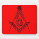 Masonic Square and Compasses mouse pad with red background.