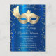 Masque Diamonds Blue Metallic Masquerade Invitation Postcard