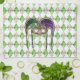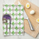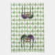 16” x 24” kitchen towel with an image, on both ends, of a beautiful purple, green, and gold masque une paillette (sequin mask) with long coordinating ribbons on a background of diamond-shaped emeralds and gold citrines arranged in an argyle pattern. See matching cloth napkin, paper cocktail napkin, cloth placemat, paper placemat and coasters. See the entire Mardi Gras Kitchen Towel collection in the FOOD/BEV | Linens section.
