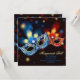 Birthday, Event or Mardi Gras Invitations for a Masquerade Ball with red and blue masks with feathers.