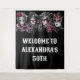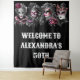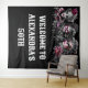 A fabulous Venetian masked ball wall hanging features vibrant and eye-catching watercolor ai graphics of men and women wearing opulent and ornate face masks in shades of dark plum, burgundy, grey and black. Their masks are adorned with ornate filigree etchings, feathers and floral flowers. Each mask is unique and both the men and woman have porcelain white skin and dark ruby red lips. Personalise the large, bold text templates to suit your special masquerade carnival or festival birthday party or business event.