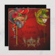 Beautiful red background with an elegant red floral swirl frame, adorned with three gorgeous, ornate Masquerade masks. Personalise with your event information. Change text to read Quinceanera, Bat Mitzvah, 90th, 100th, 60th or any age birthday girl you are throwing a party for.