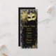 Masquerade party menu and program with beautiful gold masquerade mask on a pretty black, gold and white bokeh background. These masquerade party menu or programs are easily customised with the text of your choice on the front and back in the font style you prefer.
