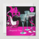 Masquerade Birthday Party Pink Wine Stiletto Invitation