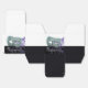 Square classic style favour box with an image, on the front and back, of purple lace over black, and a beautiful mask wove with ribbons of blue, gold, green, purple, and fuchsia with sparkling silver trim. "Masquerade" is printed beneath it in silver French script. See the entire Mardi Gras Favour Box collection in the SPECIAL TOUCHES | Party Favours section.