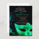 Masquerade Green Masque Black Sweet 16 Invitation Postcard