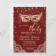 A modern, chic and glamourous invitation with elegant lace, gold diamonds and masquerade mask.