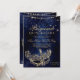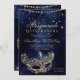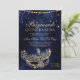 A modern, chic and glamourous QUINCEAÑERA with a hand drawn gold glitter masquerade mask with gold glitter diamond sparkles on a dark navy blue watercolor background.