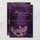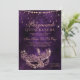 A modern, chic and glamourous QUINCEAÑERA with a hand drawn rose gold glitter masquerade mask with rose gold glitter diamond sparkles on a dark purple watercolor background.
