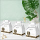 Make your event unforgettable with this exquisite favour box design. Immerse yourself in the enchanting world of Masquerade with our mask motif and harlequin pattern design, curated in a stunning black and gold colour palette. Perfect for Sweet 16 celebrations, each box can be personalised with a name and elegant thank you message to your guests. Express gratitude in style and sophistication - because their presence deserves the finest appreciation. Search ID1032 to see other products and colours for this design.
