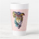 Masquerade Mask on Dusty Pink Brocade Pattern Latte Mug