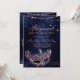 A modern, chic and glamourous QUINCEAÑERA with a hand drawn rose gold glitter masquerade mask with rose gold glitter diamond sparkles on a dark navy blue watercolor background.