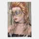 3D digital render of a beautiful woman with masquerade mask on a retro house background