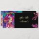 Colourful Venetian nocturne with an expressive ,romantic character : whimsical violin player with feathered sparkling pink fuchsia costumes and a funny owl in the moon light ,with a beautiful red flourishes on the backside of the card . Watercolor painting in bright red green,blue,yellow colours , gold sparkles ,inspired from Piero (Pierrot),,Comedy of Art (Commedia dell'arte ) and Carnival of Venice . It is a beautiful announcement card for holiday,Mardi Gras masquerade costume parties ,special occasions,child's birthday parties ,sweet 16, New year's eve masquerade ball,Valentine's day,anniversaries,gatherings just about any event you wish !