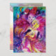Colourful Venetian nocturne with an expressive ,romantic character : whimsical violin player with feathered sparkling pink fuchsia costumes and a funny owl in the moon light ,with a beautiful golden red rose on the backside of the card . Watercolor painting in bright red green,blue,yellow colours , gold sparkles ,inspired from Piero (Pierrot),Comedy of Art (Commedia dell'arte ) and Carnival of Venice . It is a beautiful announcement card for holiday,Mardi Gras masquerade costume parties ,special occasions,child's birthday parties ,sweet 16, New year's eve masquerade ball,Valentine's day,anniversaries,gatherings just about any event you wish !