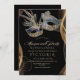 Masquerade Party Quinceañera Black & Gold Birthday Invitation