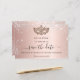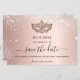 A Save the Date card for a 50th (or any age) birthday masquerade party. A rose gold background decorated with faux silver sparkles and a masquerade mask. Personalise and add a date and name/age. The text: Save the Date is written with a large trendy hand lettered style script with swashes.