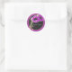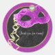 This masquerade party thank you sticker features a beautiful mask with a diamond and pearl brooch graphic, ribbon twirls, damask border, golden border and black textured look background. Easily customised. Lots of colours - hot pink