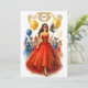 Celebrate a magical milestone with this luxurious red and gold masquerade Quinceañeratheme. Featuring an elegant young lady in a sparkling red ball gown, gold and navy balloons, ornate golden accents, and a glamourous masked ball theme, this design is perfect for a formal and unforgettable celebration. The matching back design includes space for all your event details, framed with deep red feathers, gold balloons, and roses, creating a cohesive and sophisticated look. Ideal for Quinceañeras, masquerade parties, or any elegant sweet 15 celebration. Easily personalise with your name, date, and event information to make it uniquely yours.