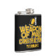 The flask itself is fine. It’s a cheap flask, obviously bought in bulk, however am prepared to overlook that. Given that it is a personalized item, I would have liked to have seen gift boxing instead of the generic packaging. Terrible printing, and/or quality. It’s a cheap, tacky vinyl. It is not cut straight and is also applied in a way that it is overhanging the bottom, causing the glue to catch on items and it will eventually roll and tear, damaging the wrap.