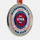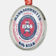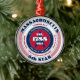 Show your state pride this holiday season with this unique Massachusetts 6th state Christmas ornament. It has red, white, and blue patriotic colours with a circular typography design on a white background. The text includes facts about the state, such as its name, capital, state abbreviation, region, time zone, geographic coordinates, the year of its statehood, and its resident's name. It's a great gift for those who wish to celebrate their state or for those who are feeling nostalgic about their home state.