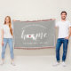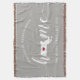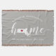 Show some home state pride with this cute rustic gray throw blanket featuring "home" in white calligraphy script lettering with a silhouette map of the state of Massachusetts standing in for the letter "O." A red heart illustration inside the state map completes the design; you can change the position of the heart to your home city by opening the design tool and dragging the heart shape to your favorite spot. Personalize with your home city, family name and year established to create a perfect and memorable housewarming gift or addition to your new home.