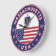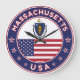 Badge of Massachusetts with flag of Massachusetts and flag of USA colours, rounded shape. Emblem of Massachusetts. Seal of Massachusetts. USA States collection.