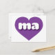 This postcard features a vibrant purple heart containing the bold, white, rounded lower case letters ma, a playful abbreviation for Massachusetts, the bay state. The reverse side of the postcard is blank, awaiting your handwritten sentiments or customised text.