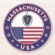 Badge of Massachusetts with flag of Massachusetts and flag of USA colours, rounded shape.