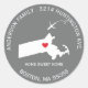 Unique State of Massachusetts New home address label sticker set on a grey background with a red heart & aeroplane.