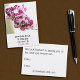 This standard business card front with two beautiful variegated purple Phalaenopsis Orchid flowers also known as a "moth orchid" is a beautiful design for an appointment card for a spa, salon, yoga, personal trainer, massage therapist or your business. The back offers the space for the appointment information. Fill in the template fields with your information, REMOVE unwanted text or click customise to select a font style, size and colour you prefer.