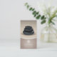 This spa business card exudes serenity. Three massage stones are stacked on a clean wood surface coordinating with a curved taupe panel below. The business name is enhanced by a sun ornament with either a website or a phone number below. The wood panels are repeated on the reverse to show all contact information plus an area for appointment reminders. The sun ornament can be replaced with your own logo or other image if desired. Available in alternate colours with matching products.