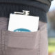The flask itself is fine. It’s a cheap flask, obviously bought in bulk, however am prepared to overlook that. Given that it is a personalized item, I would have liked to have seen gift boxing instead of the generic packaging. Terrible printing, and/or quality. It’s a cheap, tacky vinyl. It is not cut straight and is also applied in a way that it is overhanging the bottom, causing the glue to catch on items and it will eventually roll and tear, damaging the wrap.