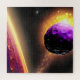 An enormous, violet-toned rock, surrounded by a haze of luminous dust, is hurtling through the endless, inky expanse. This colossal entity leaves a trail of shimmering light in its wake, painting a mesmerising path across the sky. It's not just any rock, it's one from the farthest reaches of the universe, a relic of a far-off place that we can only dream of visiting.