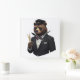 "A stunning wall clock featuring a sophisticated barber bear in a tuxedo holding golden scissors. This elegant design is the perfect decor piece for professional barbershops and styling salons.".