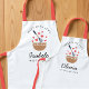 This apron features a graphic of a mixing bowl with a whisk, little red hearts and the saying "made with love". Personalise it by adding your name below the image. This can be paired with a matching child's apron. Easily edit all text to make it your own. An adorable mummy and me apron set!