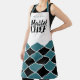 Geometric mosaic pavement style patterned print all over elegant apron in black, white, and teal blue with a masculine look and bold MASTER CHEF typography script.+++++++++++ You can personalise it with your name. ++++++++ It can be a nice gift for a cooking lover or a master chef - husband, friend, fiancee, or employee.
