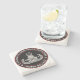 The coasters are gorgeous, a quality feel and heavy weight. They look like a precious archeological find. A rustic stone juxtaposed with a modern floral black and white print. I like the way the print goes slightly imperfect on the cut stone edges giving them a kind-of natural beauty.
