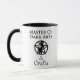 Master of Dark Arts & Crafts. This funny occult knitting & crocheting design is a great gift for a witch or pagan who loves to knit or crochet. Has a graphic of a pentagram with a cat playing with a ball of yarn. Crafting & the fibre arts can seem like witchcraft or magic sometimes. If you’re a knitter or crocheter, express your magical crafty side with this humourous accessory. Perfect to wear on Halloween as part of a costume!