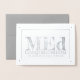 A silver foil graduation card for those who have achieved a Master of Education degree.