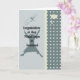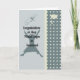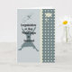 The graduation colours for Government have been used on this Masters Degree in Government card. The colours are a deep teal and a light yellowish green accent has been used to compliment the colour. There is a cap, a degree and a graduate jumping for joy in the design. It will surly please the person who received this card from you.